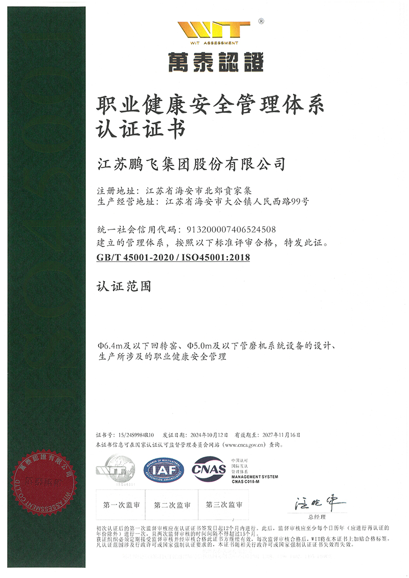(2024年10月)職業健康安全管理體系認證證書