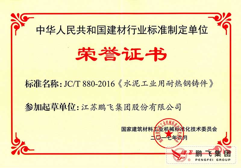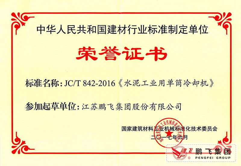 (2017年6月21)回轉(zhuǎn)窯國標(biāo)起草證書技術(shù)標(biāo)準(zhǔn)優(yōu)秀獎