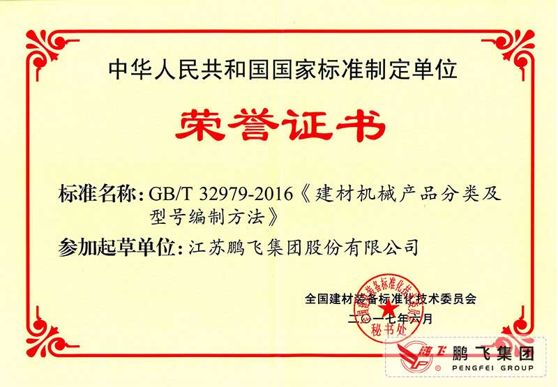 (2017年6月21)建材機械產(chǎn)品分類及型號編制方法國標(biāo)起草證書
