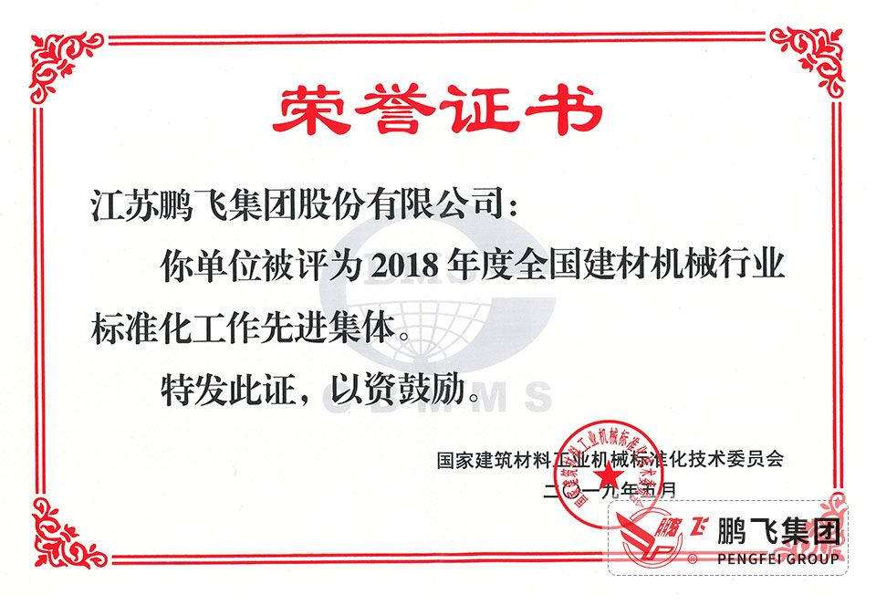 (2019年5月)全國建材機械標(biāo)準(zhǔn)化工作先進集體
