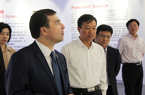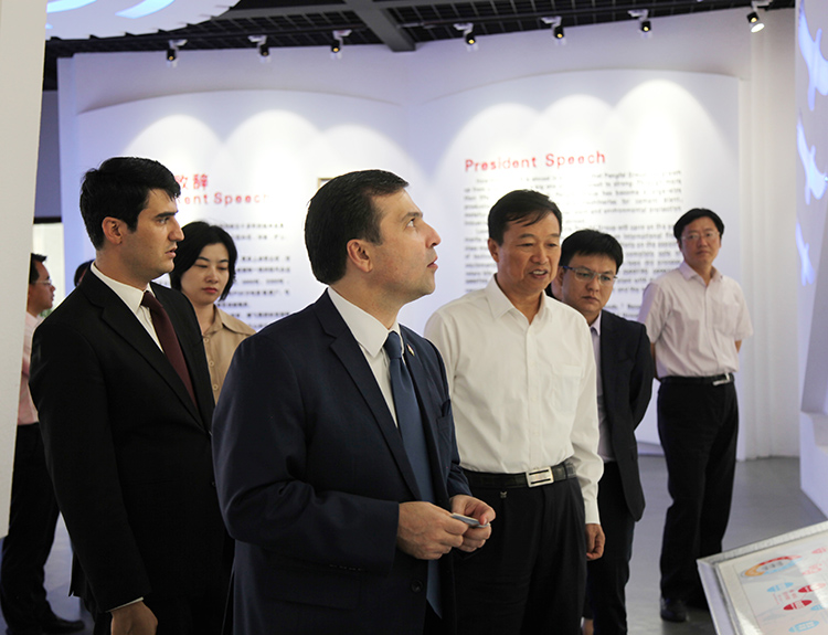 大使先生的來訪,受到鵬飛總裁王家安的熱烈歡迎,雙方一邊參觀,一邊交流。共同回顧了王家安先生本月中旬受邀出訪塔吉克斯坦3300t/d水泥生產線奠基儀式,與塔國總統莫馬利·拉赫蒙的接見過程。隨后大使先生詢問了鵬飛公司的發展歷程,公司產品所涉及的行業,水泥裝備對綠色環保、節能降耗等方面的使用情況。參觀結束后,大使先生首先感謝鵬飛的熱情接待,并對鵬飛的整體實力、產品性能給予了高度評價,望在今后的合作交流中進一步加深友誼,為下一步的合作夯實根基。