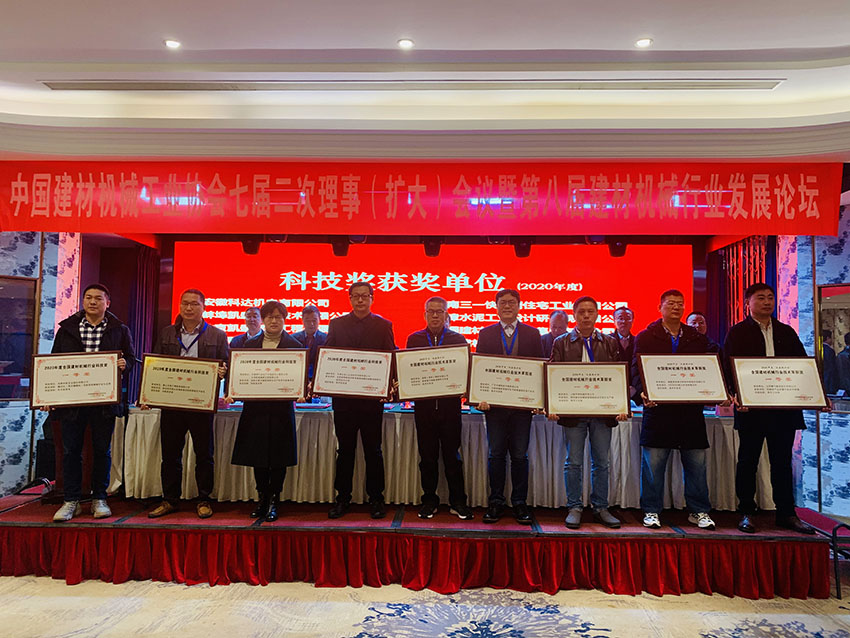 會議現場頒發了首批建材機械行業知識產權優勢企業、2020年建材機械行業科技獎、2020年“迪森鍋爐杯”第十四屆全國建材機械行業技術革新獎,并向迪森(常州)鍋爐有限公司頒發了公益企業獎。江蘇鵬飛集團股份有限公司榮獲2020年度全國建材機械行業技術革新獎一等獎。