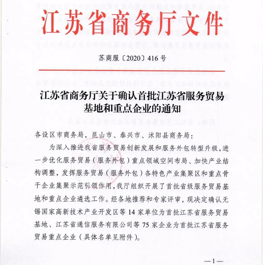 為深入推進江蘇省服務貿易創新發展和服務外包轉型升級,進一步優化服務貿易(服務外包)重點領域空間布局、加快產業結構調整,發揮服務貿易(服務外包)各特色產業集聚區和重點骨干企業集聚示范引領作用,江蘇省商務廳組織開展了首批省級服務貿易基地和重點企業遴選工作,江蘇鵬飛集團股份有限公司獲評省首批服務貿易重點企業。
