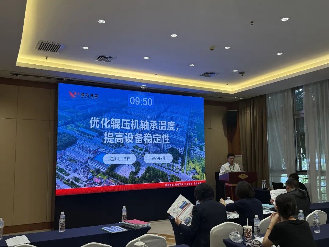 鵬飛集團輥壓機QC小組發(fā)表成果《優(yōu)化輥壓機軸承溫度,提高設備穩(wěn)定性》。輥壓機QC小組圍繞輥壓機軸承溫度高、冷卻水流量不穩(wěn)定等問題,通過優(yōu)化冷卻水路和潤滑系統(tǒng),規(guī)范安裝工藝。改進后軸承溫度降至50℃以內(nèi),設備綜合效率提高7%,壽命延長20%,顯著提升設備穩(wěn)定性,降低了能耗。