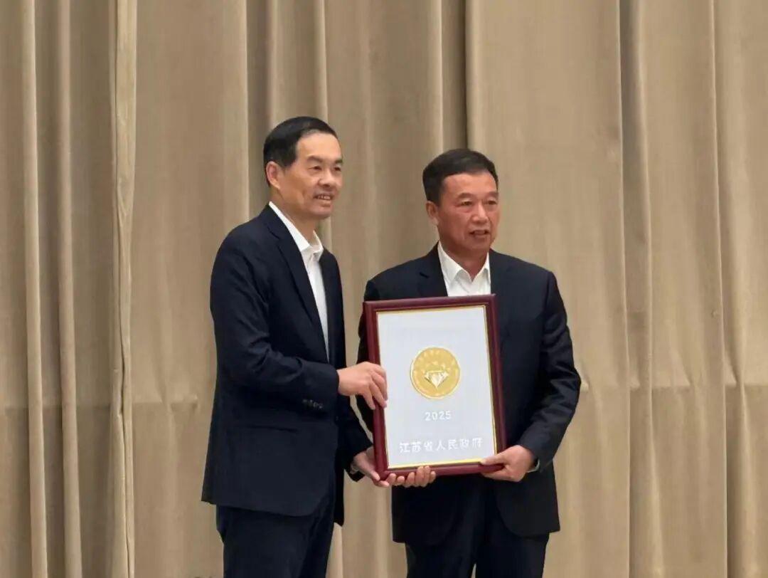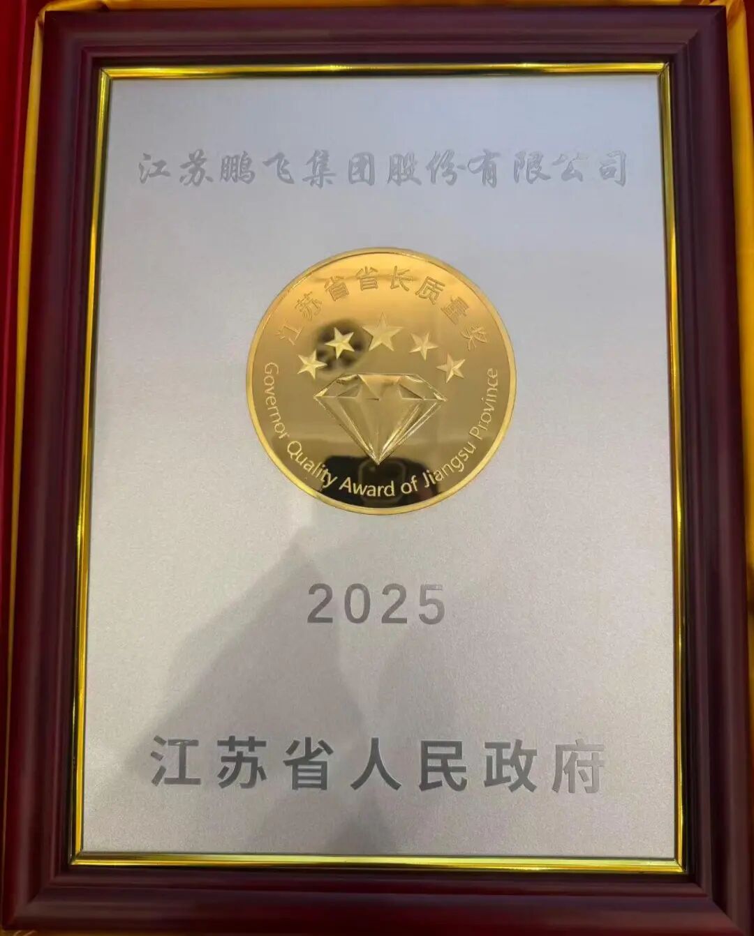 2月27日,2025年度江蘇省省長質量獎頒獎儀式在南京舉行,省長劉小濤為獲獎企業頒獎,充分肯定企業在質量領域的深耕與卓越追求。江蘇鵬飛集團股份有限公司作為獲獎企業之一,董事長王家安上臺領獎。