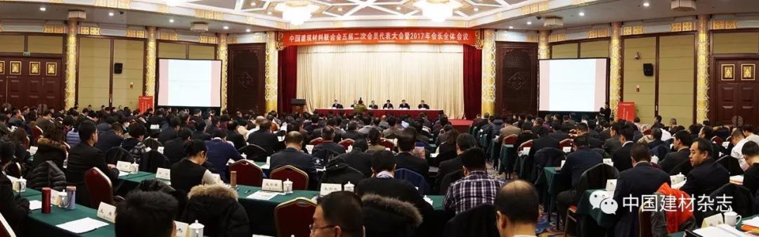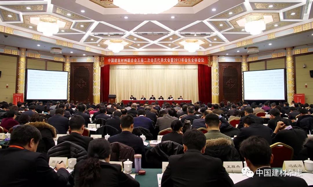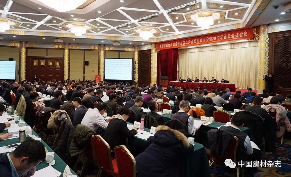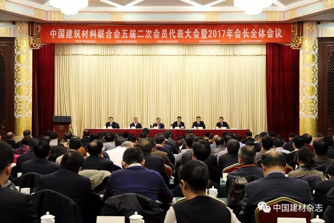 12月20日,中國建筑材料聯合會五屆二次會員代表大會暨2017年會長全體會議在北京召開。中國建筑材料聯合會黨委書記、會長喬龍德出席會議并作了題為《全面貫徹落實黨的十九大精神開啟中國制造和中國創造并舉新征程構建新時代轉向高端發展的新藍圖朝著超越引領戰略目標奮勇前進》的主旨報告。執行副會長宋志平、劉志江,副會長陳國慶、張東壯、姚燕、王剛(金晶)、曹江林、李新華、王剛(建華)、聶長蘭、徐德復、彭壽、彭建新、薛忠民、王家安、張奇、胡景山、崔向東,以及常務理事、理事、會員代表,全國各地方建材行業協會(行辦)會長(主任)、秘書長,各專業協會會長、駐會副會長、秘書長;各分會理事長、駐會副理事長、秘書長;聯合會各直屬單位、投資實體領導班子全體成員,水泥、玻璃、陶瓷、制品、非礦、磚瓦(墻材)、石材、玻纖、復合、裝備制造、工程建設、新型及裝飾裝修材料等產業的大型骨干企業的主要負責人,聯合會本部全體人員及行業媒體記者共300余人參加了會議。會議由聯合會黨委常務副書記、秘書長孫向遠主持。