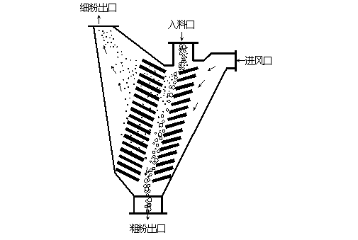 用于水泥粉磨的組合式選粉機,內(nèi)部結(jié)構(gòu)還要做一定的調(diào)整、并采用袋收塵器收集細粉,一般不用旋風(fēng)筒收集細粉,因旋風(fēng)筒對微細粉的收集困難,會影響水泥早期強度。