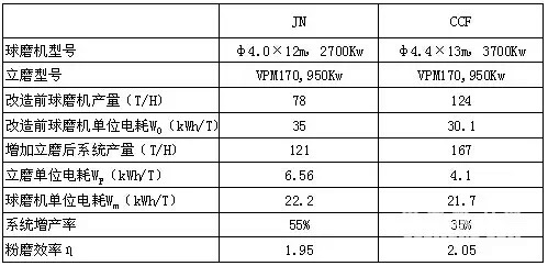 根據(jù)以上分析,我們認(rèn)為聯(lián)合半終粉磨系統(tǒng)可以較大幅度增加產(chǎn)量、降低電耗。