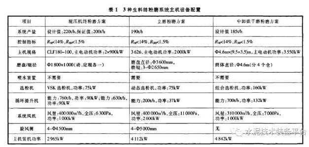 2 3種生料終粉磨系統的綜合對比