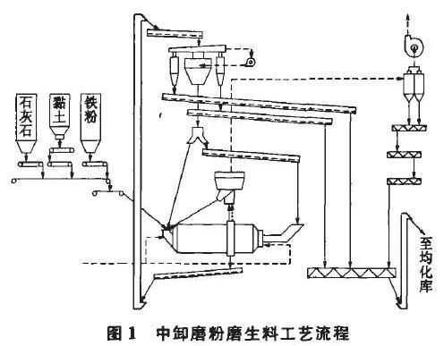 立磨終粉磨生料工藝流程見圖2.