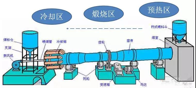 預熱區的基本化學反應包括,物料溫度預熱至900℃左右、蒸發物料中的水分、鈣表面部分開始分解、碳酸鎂完全分解等。