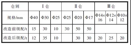 表2 改造前后磨內研磨體級配