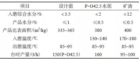 JLMS-46.4立磨主要技術參數見表1,水泥與礦渣主要工藝參數見表2。