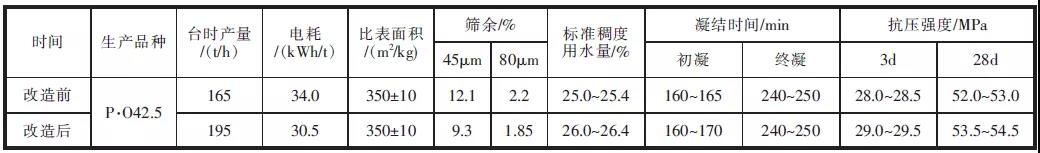 表3 改造前后各項指標(biāo)及水泥性能