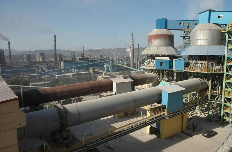 (2)回轉(zhuǎn)窯:回轉(zhuǎn)窯由筒體、支撐裝置、變速傳動(dòng)裝置、擋輪裝置、窯尾及窯頭密封、窯頭罩組成。窯體與水平呈3.5%傾斜放置。配有兩套支撐裝置,其托輪軸承為水冷式油勺潤滑滑動(dòng)軸承,并有球面瓦能自動(dòng)調(diào)心。在靠近大齒圈處還配有液壓擋輪。采用變頻調(diào)速電機(jī)驅(qū)動(dòng)窯體,并設(shè)有附助傳動(dòng)驅(qū)動(dòng)窯體。窯頭窯尾采用彈簧片式密封裝置。采用變頻調(diào)速電機(jī)驅(qū)動(dòng)窯體結(jié)合預(yù)熱器分解率,有效控制煅燒時(shí)間及溫度,達(dá)到生燒和過燒指標(biāo)要求。